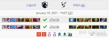 26分钟,Vikin.gg趁着帕克还未复活打算正面平推,赏金猎人一个人走进了对方野区被斯拉达控住击杀,Vikin.gg还想开团结果被Liquid打了个各个击破。水晶室女留住了力丸,谜团拉大影魔,斯拉达带走了神谕者。正面Vikin.gg溃败被Liquid再度团灭,Vikin.gg眼见败势已定打出gg。
